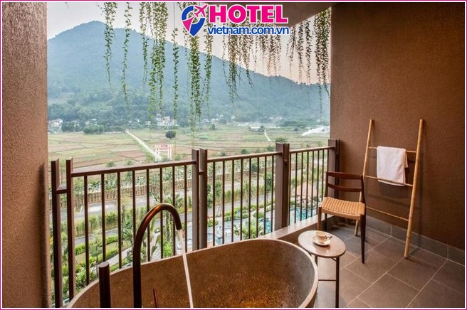 - Thiết kế biệt thự & phòng nghỉ tích hợp mạch khoáng nóng tự nhiên chảy trực tiếp vào phòng.
